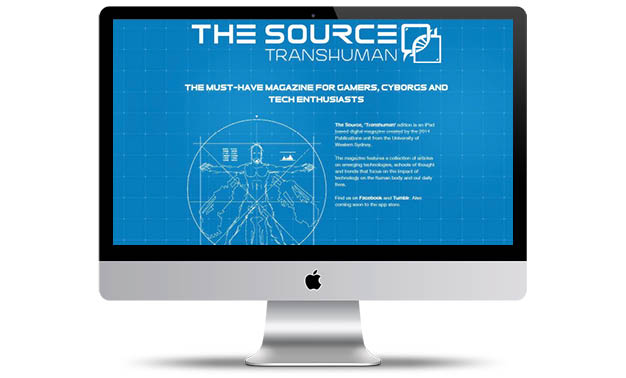 The Source is an online publication designed by UWS students. The publication was based around the theory of Transhuman: body and modification. The publication included articles by each student regarding emerging technology’s, schools of thought and trends that focus on the impact of technology on the human body and our daily lives.